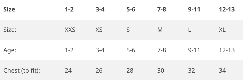 3-4, 5-6, 7-8, 9-11, 12-13, XS, S, M, L, XL